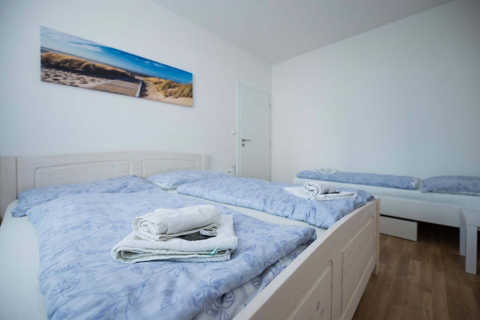 V druhé ložnici jsou 3 samostatné postele.