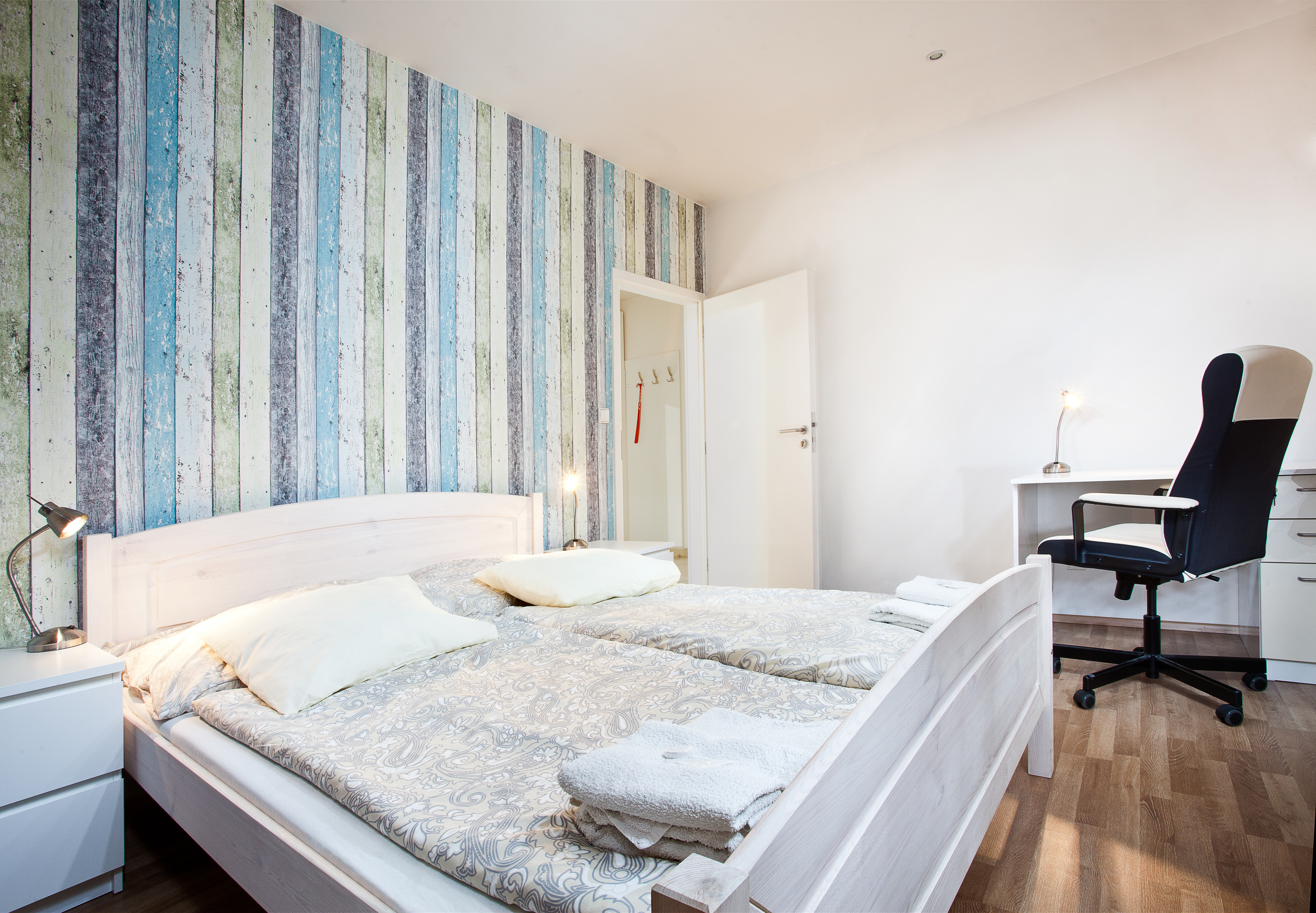 Prostorný byt se skládá z dvou ložnic. Díky své variabilnosti je apartmán vhodný jak pro skupinu přátel, rodinu, tak pro firemní zaměstnance na služební cestě. Samozřejmostí je vybavenost ložním prádlem, ručníky, šampóny a hotelovým mýdlem.