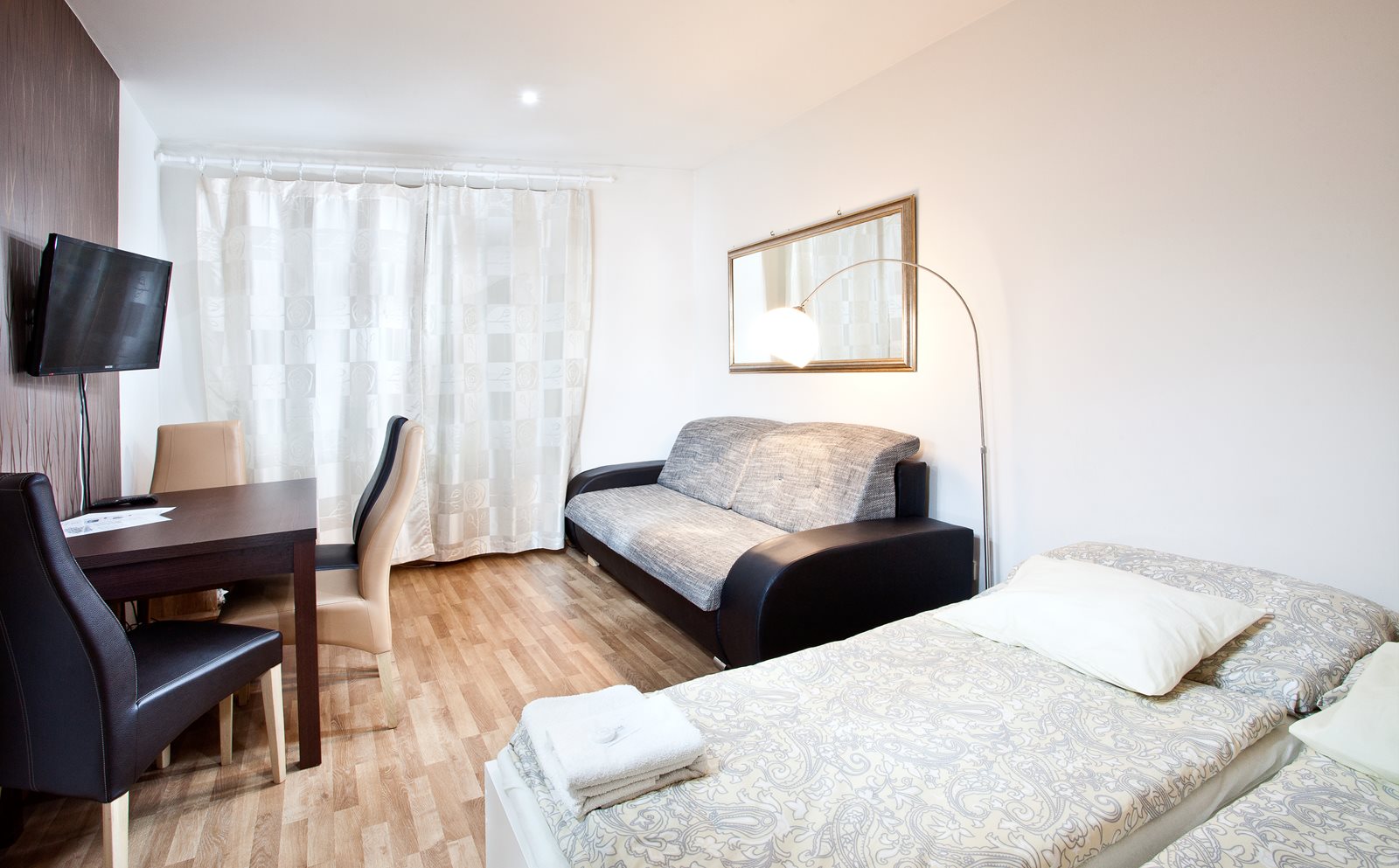 Prostorný dvoupokojový apartmán, kde se může ubytovat až 6 hostů. Apartmán je plně vybavený, jako v hotelu. Nabízíme možnost snídaní formou bufetu. Ubytování je vhodné jak pro rodinu nebo skupinu přátel, tak pro firemní hosty a zaměstnance na služebních cestách. K dispozici je Vám podzemní garážové stání. Arpatmán se skládá ze dvou oddělených ložnic, přičemž jedna z ložnic je propojena s obývacím pokojem. Ubytovaní mají k dispozici vlastní kuchyni a koupelnu s toaletou. WIFI zdarma.