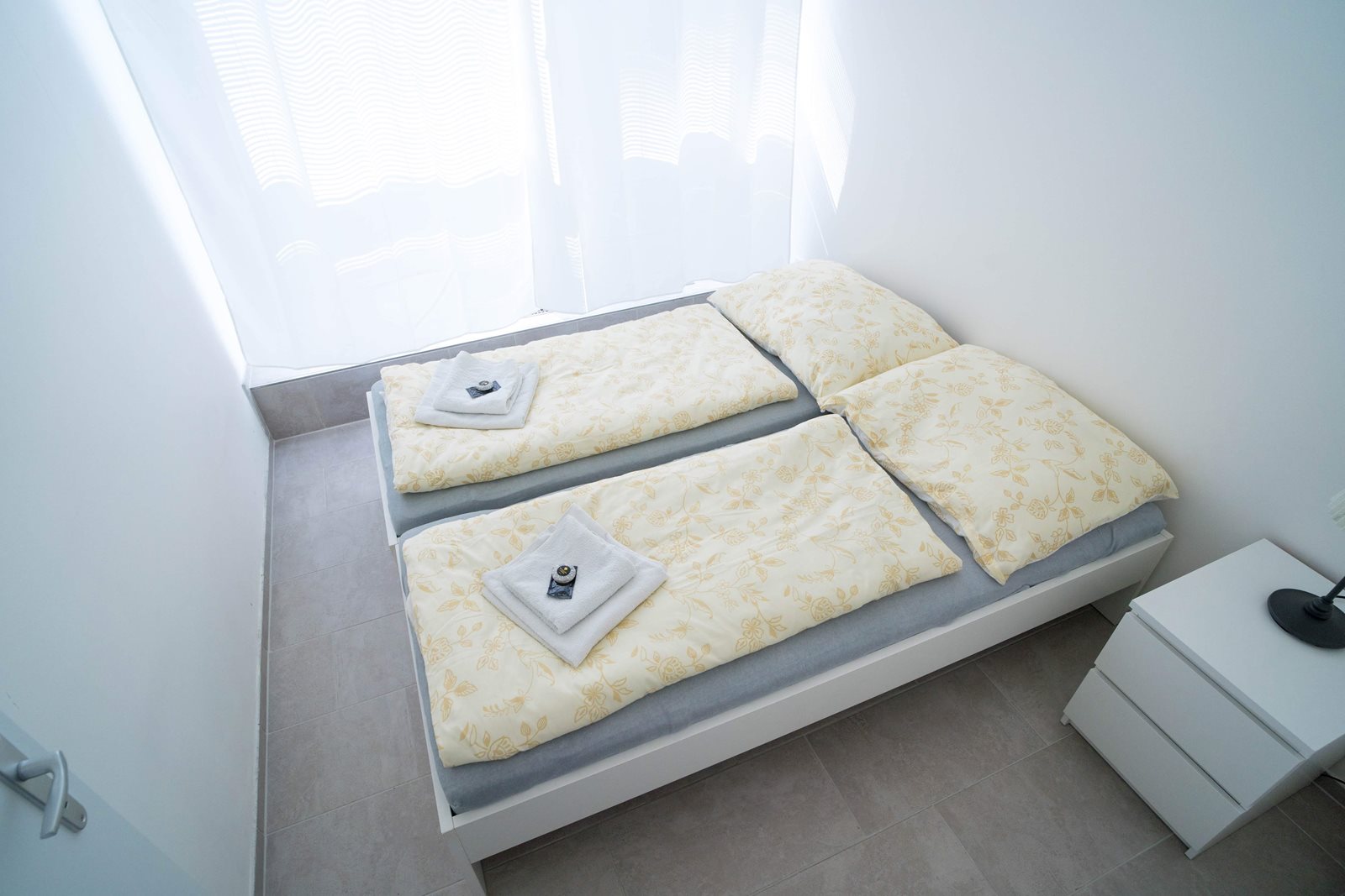 Prostorný dvoupokojový apartmán, kde se může ubytovat až 8 hostů. Apartmán je plně vybavený, jako v hotelu. Nabízíme možnost snídaní formou bufetu. Ubytování je vhodné jak pro rodinu nebo skupinu přátel, tak pro firemní hosty a zaměstnance na služebních cestách. K dispozici je Vám podzemní garážové stání. Apartmán se skládá ze dvou oddělených ložnic, kde se nachází rozkládací pohovka. Ubytovaní mají k dispozici vlastní kuchyni a koupelnu s toaletou. WIFI zdarma.