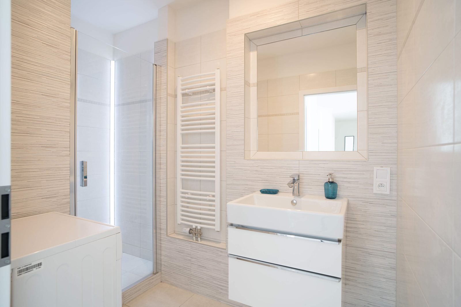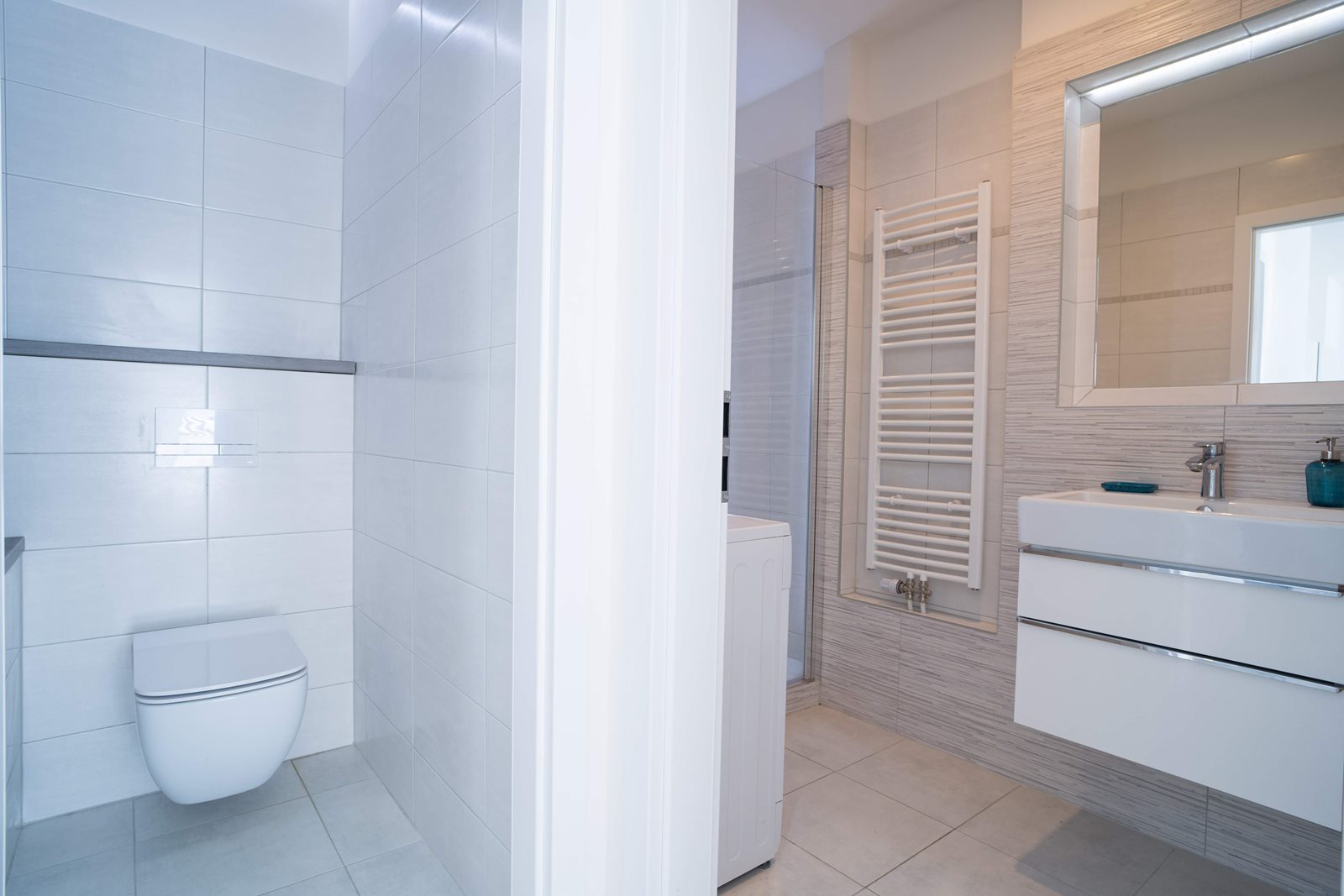 V apartmánu je koupelna spojená s toaletou a ještě jedno WC. Koupelna je zařízena sprchovým koutem.