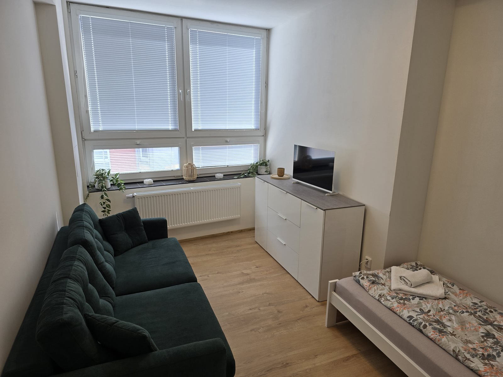 Prostorný dvoupokojový apartmán, kde se může ubytovat až 5 hostů. Apartmán je plně vybavený, jako v hotelu. Nabízíme možnost snídaní formou bufetu. Ubytování je vhodné jak pro rodinu nebo skupinu přátel, tak pro firemní hosty a zaměstnance na služebních cestách. K dispozici je Vám podzemní garážové stání. Arpatmán se skládá ze dvou oddělených ložnic, přičemž jedna z ložnic je propojena s obývacím pokojem. Ubytovaní mají k dispozici vlastní kuchyni a koupelnu s toaletou. WIFI zdarma.