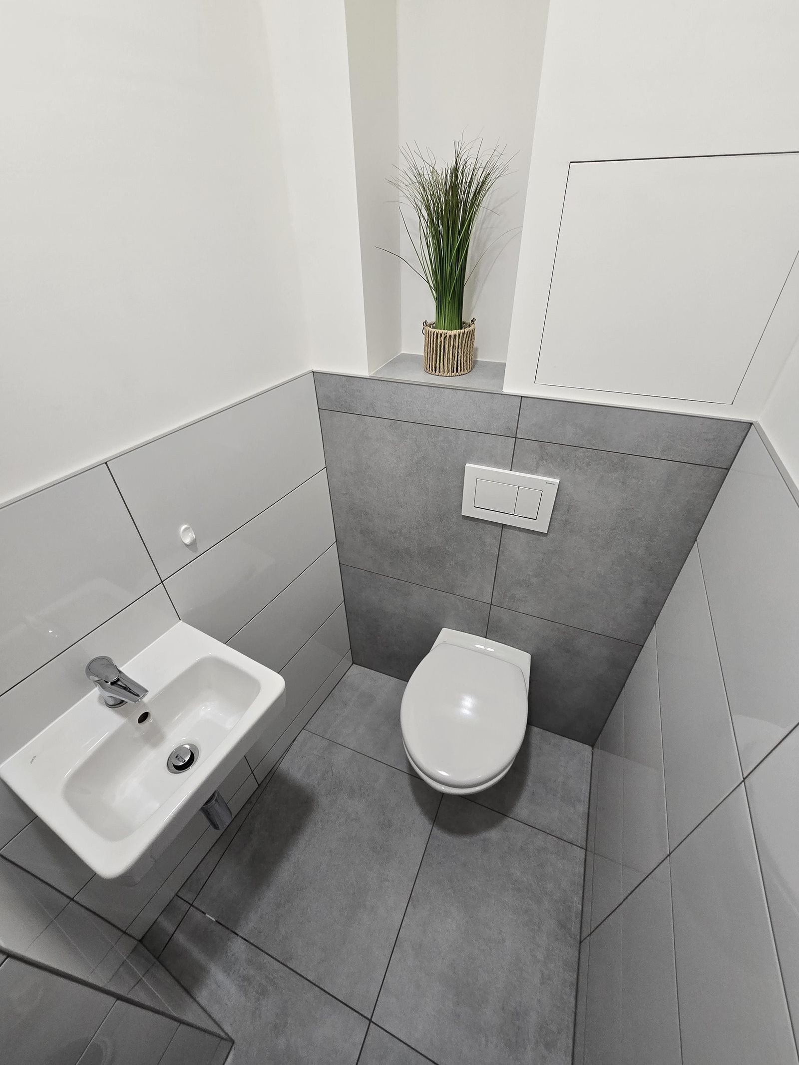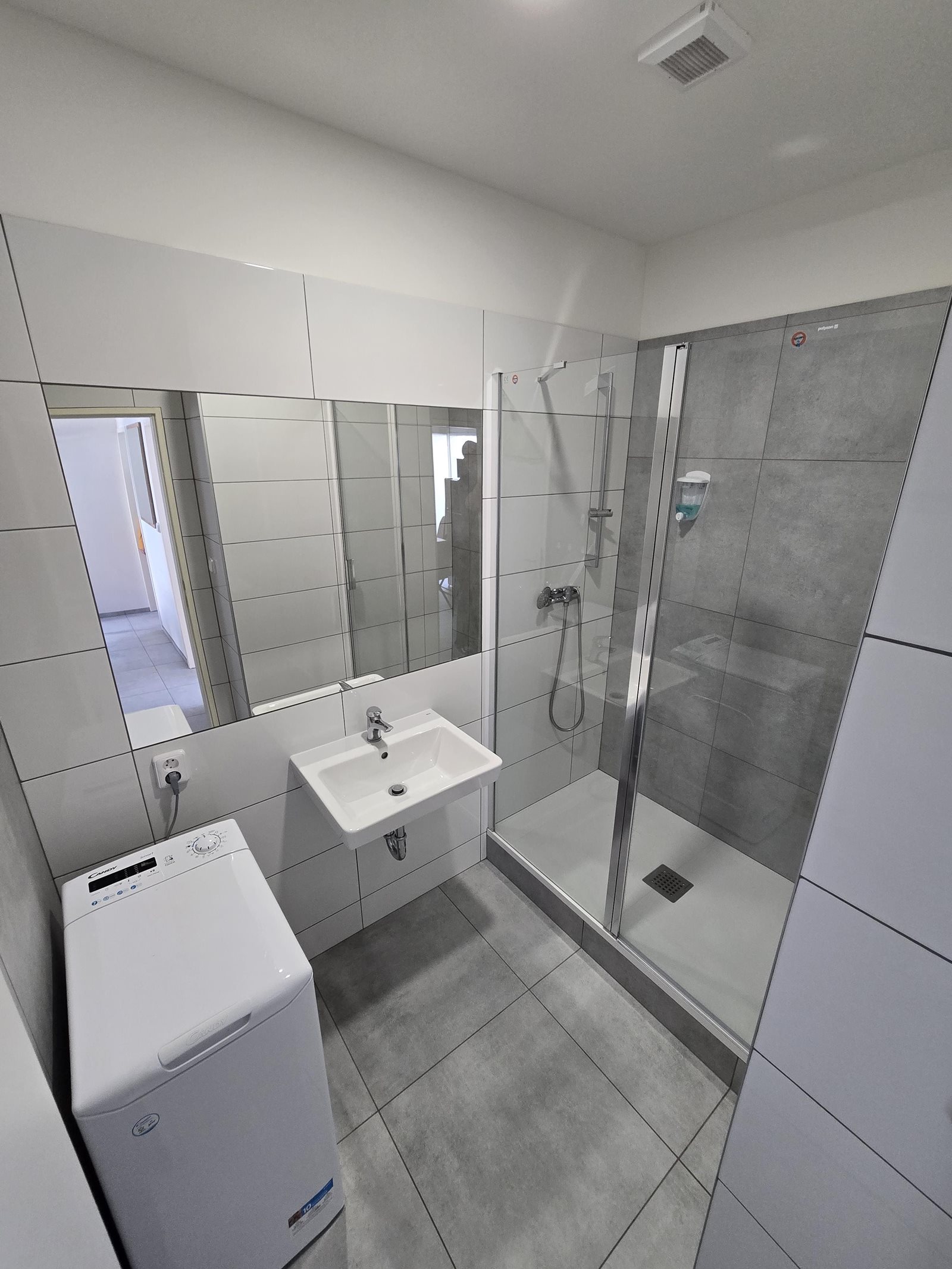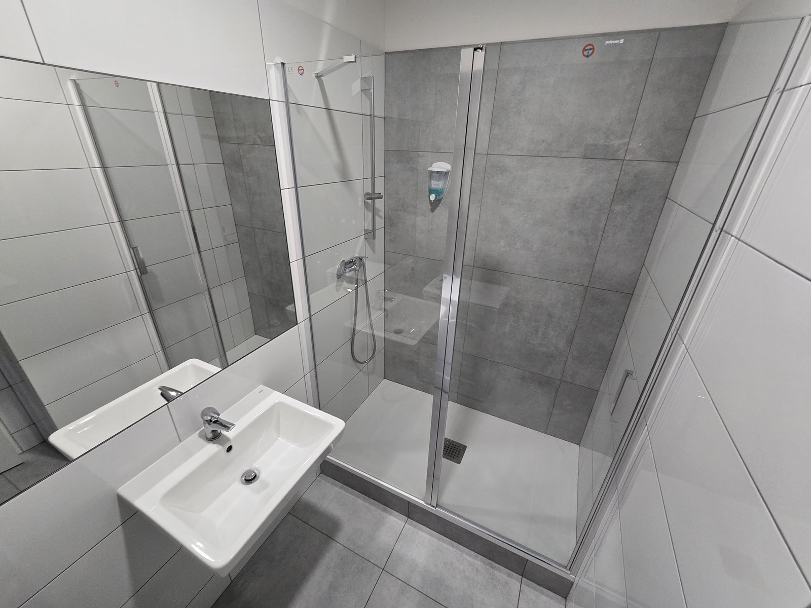 V apartmánu je koupelna spojená s toaletou. Koupelna je zařízena sprchovým koutem.