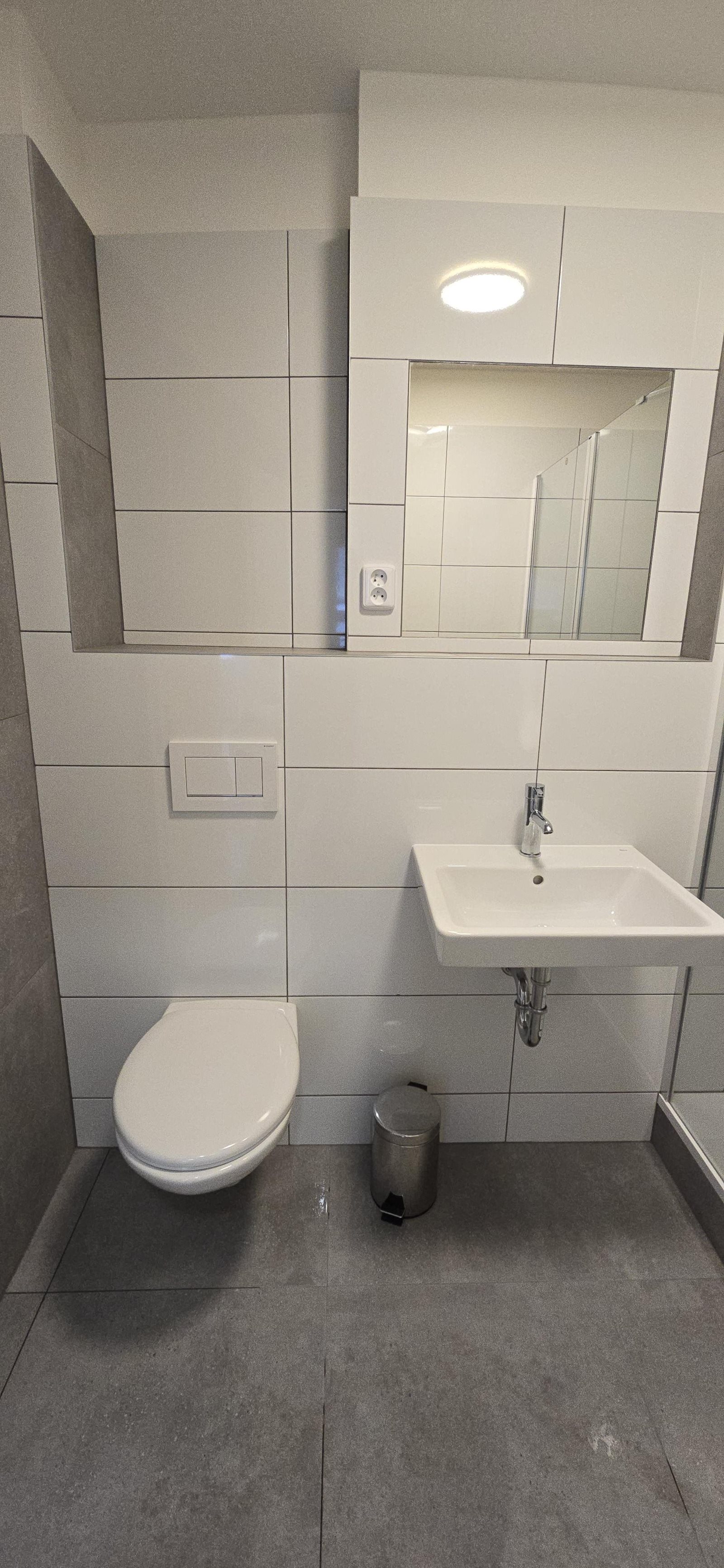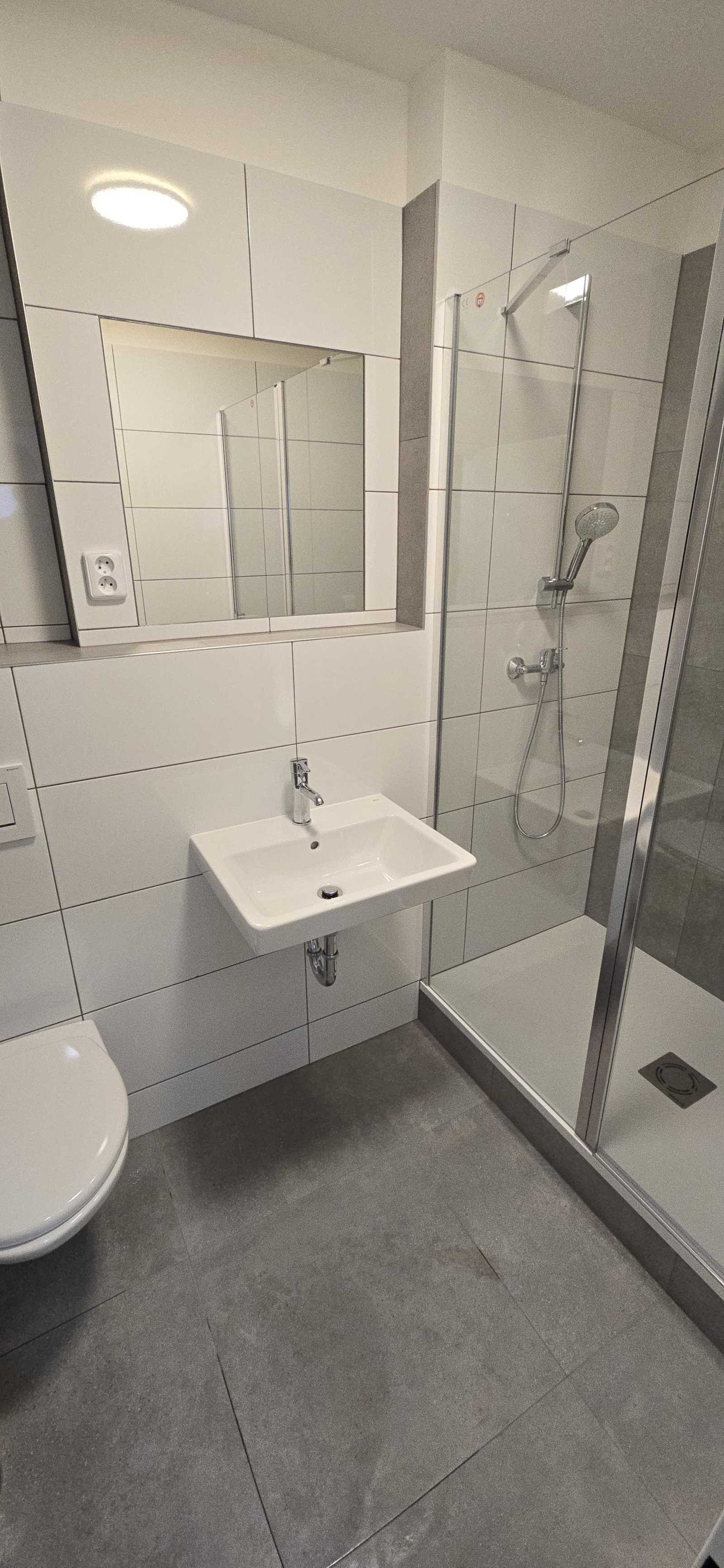 V apartmánu je koupelna spojená s toaletou. Koupelna je zařízena sprchovým koutem.