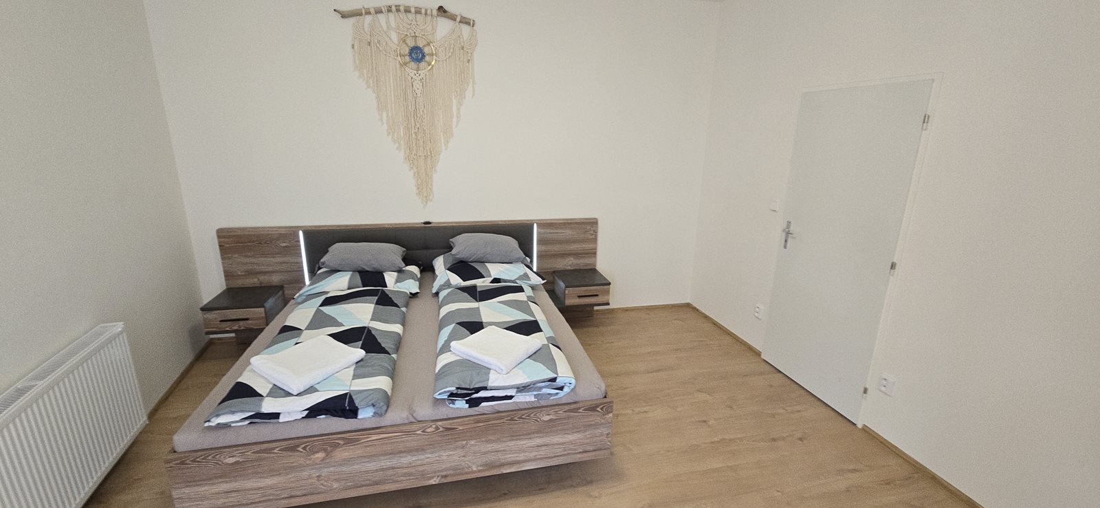 Prostorný byt se skládá z dvou ložnic. Díky své variabilnosti je apartmán vhodný jak pro skupinu přátel, rodinu, tak pro firemní zaměstnance na služební cestě. Samozřejmostí je vybavenost ložním prádlem, ručníky, šampóny a hotelovým mýdlem.